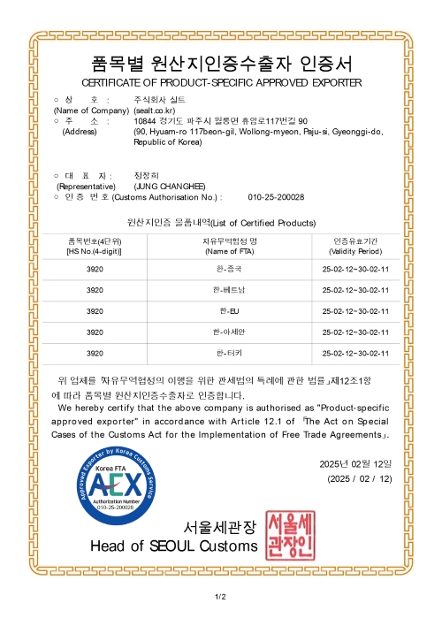 품목별 원산지인증수출자 인증서 품목별인증수출자 인증서는 해당 기업이 한국에서 특정 품목에 대해 적법하게 생산하고 품질 관리가 잘 이루어졌으며, 수출에 필요한 조건을 충족했음을 인증하는 서류입니다. 이전글 이전 글이 없습니다. 다음글 OEKO-TEX STANDARD 100 목록