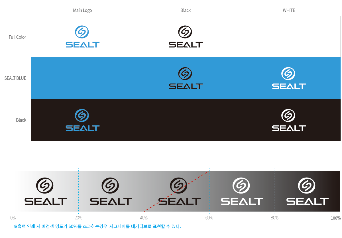 - SEALT텍스트 로고에서 알파벳 "A"는 산의 형태를 형상화 합니다.